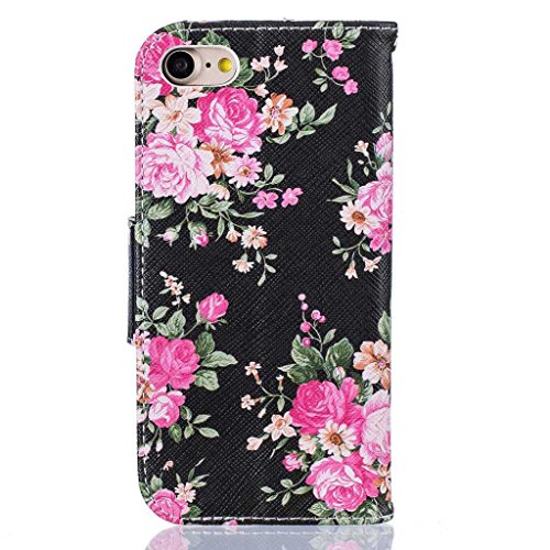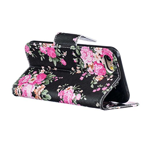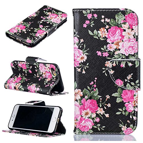 iPhone 7 ケース UNEXTATI 手帳型 軽量 全面保護カバー 横置きスタンド機能付き 耐衝撃 マグネット式 財布ケース 高品質 PUレザー iPhone7 ケース (P1 ブラック)