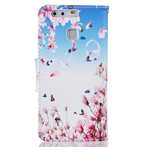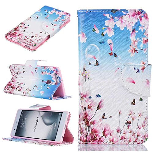 Huawei P9 ケース UNEXTATI 手帳型 軽量 全面保護カバー 横置きスタンド機能付き 耐衝撃 マグネット式 財布ケース 高品質 PUレザー Huawei P9 ケース (P4 ブルー)