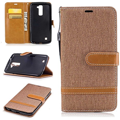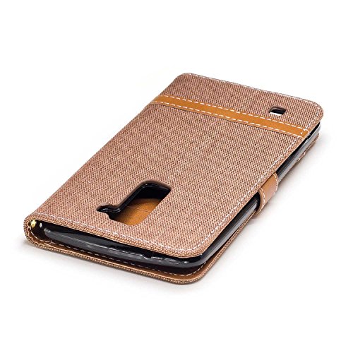 LG K10 ケース 手帳型 カード収納 横置きスタンド機能付き マグネット カバー 高品質 財布型 衝撃吸収 落下防止 LG K10 対応 ケース (P5 ブラウン)
