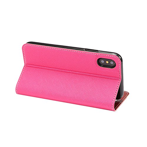 iPhone X ケース, UNEXTATI Apple iPhone X 手帳型ケース カバー, 高品質 財布型 カード収納 iPhoneX 用 ケース (P1 ピンク)