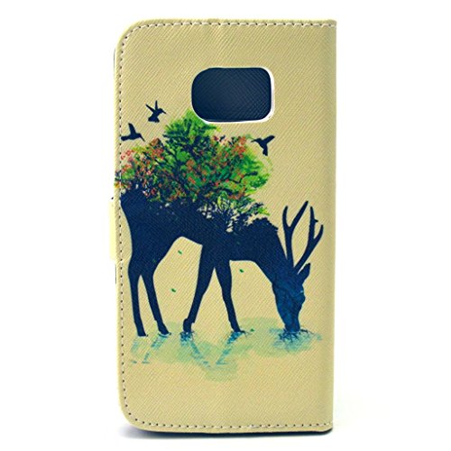 UNEXTATI Galaxy S6 Edge 用 手帳型ケース PUレザー ケース カバー 耐衝撃 全面保護 耐汚れ スタンド機能 マグネット式 Samsung Galaxy S6 Edge 対応 Case (P1, イエロー)