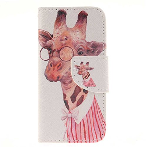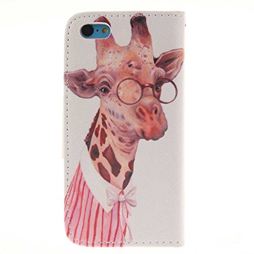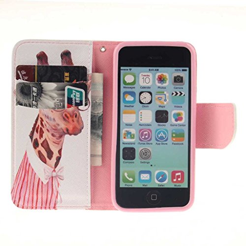 iPhone 5C ケース, UNEXTATI 手帳型ケース, Apple iPhone 5C ケース カバー, 高品質 PUレザー 手帳型 ウォレット型 財布型 保護カバー カード収納 スタンド機能 マグネット式 (P6 キリン)