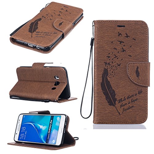 Samsung Galaxy J5 2016 (SM-J510FN) ケース UNEXTATI 高品質 PUレザー 手帳型 ケース 財布型 ウォレット型 衝撃吸収 保護カバー カード収納 ホルダー ストラップ付き 横開 スタンド機能 マグネット開閉式 シリコンカバー 液晶保護 落下防止 防塵 高級 合皮レザー Samsung Galaxy J5 2016 (SM-J510FN) 用 Case Cover (P3 ブラウン)