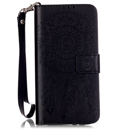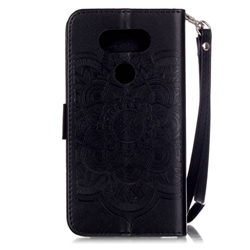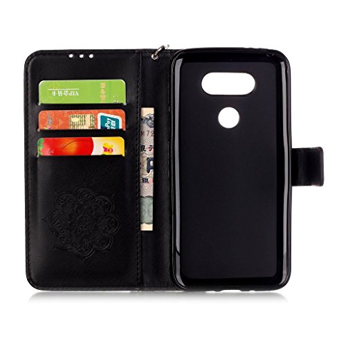 UNEXTATI LG G5 ケース PUレザー 手帳型ケース カバー カード収納 ストラップ 付き LG G5 用 Case Cover (ブラック)