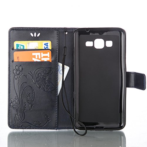UNEXTATI Galaxy Core Plus ケース 手帳型 保護 ケース 高品質 PU レザー ストラップ付き カード収納ケース カバー 耐衝撃 スタンド機能 付き Samsung Galaxy G350ケース Case (P10 ブルー)