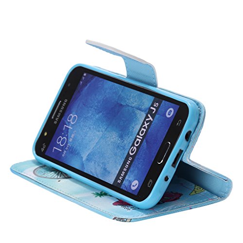 UNEXTATI Galaxy J5 ケース 高品質 合皮レザーケース マグネット 全面保護 手帳型 ケース カバー カードホルダー 付き スタンド 防塵 防水 Samsung Galaxy J5ケース Case (P1 ブルー)