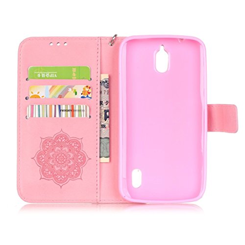 UNEXTATI Huawei Ascend Y625 ケース ダイヤモンド 手帳型ケース カバー カード収納 ストラップ 付き Huawei Ascend Y625 用 Case Cover (ピンク)