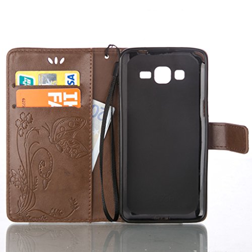UNEXTATI Galaxy Core Prime ケース 手帳型 保護 ケース 高品質 PU レザー ストラップ付き カード収納ケース カバー 耐衝撃 スタンド機能 付き Samsung Galaxy Core Primeケース Case (P5 ブラウン)
