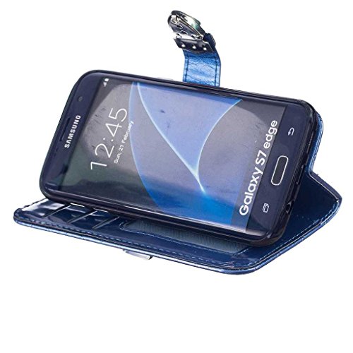 Samsung Galaxy S7 Edge ケース UNEXTATI 手帳型ケース 液晶保護 カバー カード収納 スタンド機能 付き Samsung Galaxy S7 Edge 用 高品質 PUレザー ケース Case Cover (P4 ブルー)