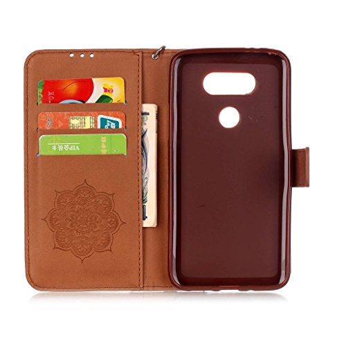 UNEXTATI LG G5 ケース PUレザー 手帳型ケース カバー カード収納 ストラップ 付き LG G5 用 Case Cover (ブラウン)