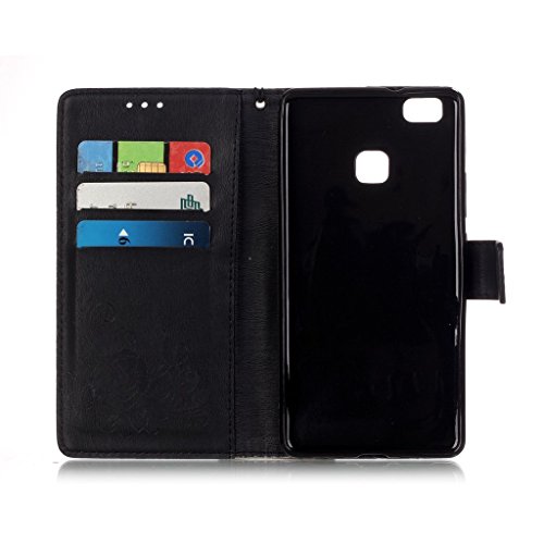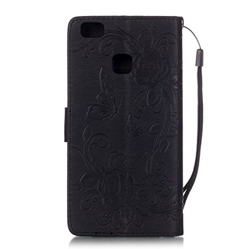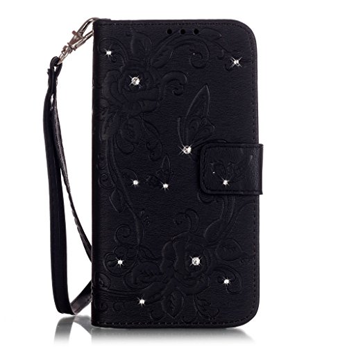 UNEXTATI Huawei P9 Lite ケース ダイヤモンド 手帳型ケース カバー カード収納 ストラップ 付き Huawei P9 Lite 用 Case Cover (ブラック)