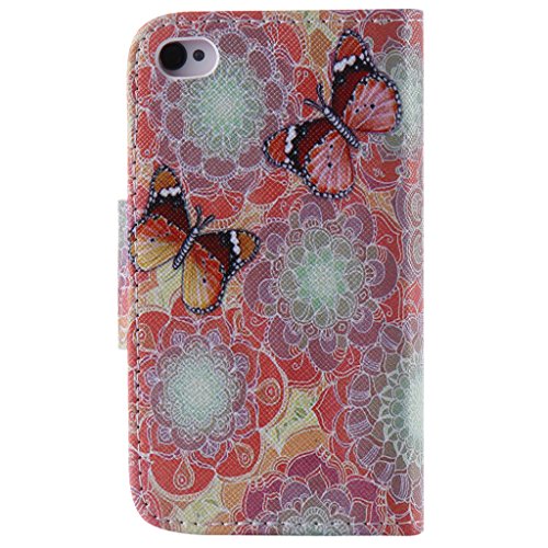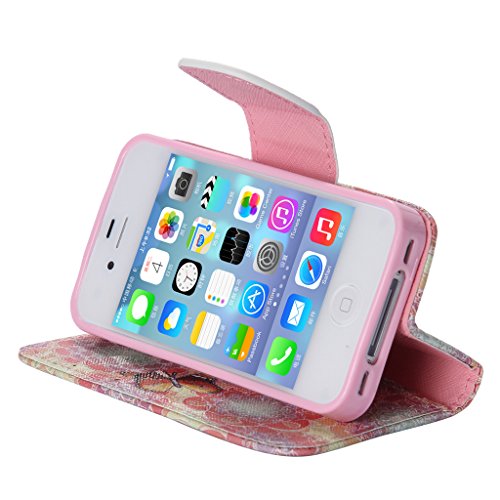 UNEXTATI iPhone 4 / iPhone 4s ケース 高級 合皮レザー 手帳型 ケース カバー カードホルダー スタンド マグネット開閉式 付き Apple iPhone 4ケース iPhone 4sケース Case (P13 レッド)