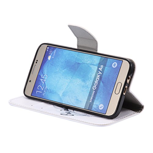 UNEXTATI Galaxy A8 ケース 高品質 合皮レザー ケース 手帳型ケース カバー カードホルダー 付き スタンド 防塵 防水 Samsung Galaxy A8ケース Case (P2 ホワイト)