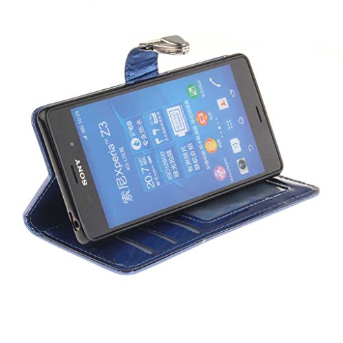 Sony Xperia Z3 ケース UNEXTATI 手帳型ケース 液晶保護 カバー カード収納 スタンド機能 付き Sony Xperia Z3 用 高品質 PUレザー ケース Case Cover (P4 ブルー)