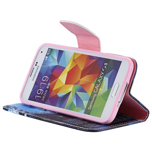 UNEXTATI Galaxy S5 ケース 高級 合皮レザー 手帳型 ケース カバー カードホルダー スタンド マグネット開閉式 付き Samsung Galaxy S5ケース Case (P7 ブルー)