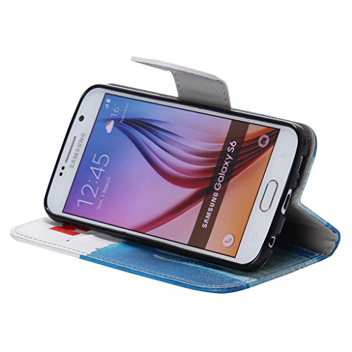 UNEXTATI Galaxy S6 Edge ケース 高品質 合皮レザーケース マグネット 全面保護 手帳型 ケース カバー カードホルダー 付き スタンド 防塵 防水 Samsung Galaxy S6 Edgeケース Case (P13 ブルー)