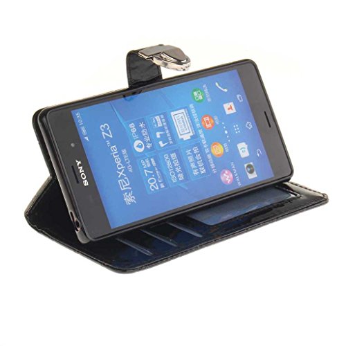 Sony Xperia Z3 ケース UNEXTATI 手帳型ケース 液晶保護 カバー カード収納 スタンド機能 付き Sony Xperia Z3 用 高品質 PUレザー ケース Case Cover (P3 ブラック)
