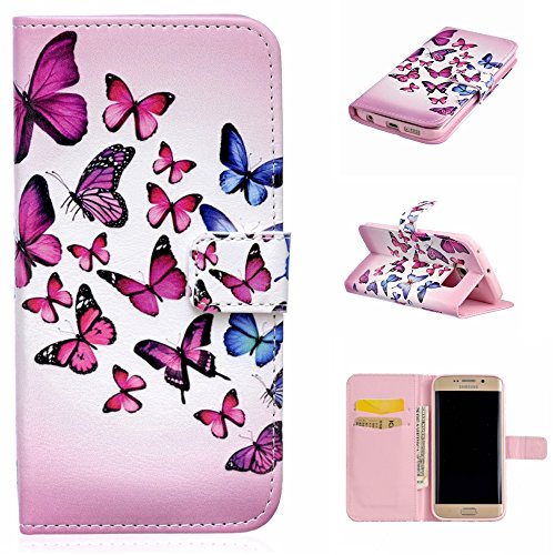 UNEXTATI Galaxy S6 Edge ケース 手帳型ケース 高級PUレザー カード収納 ホルダー 付き 耐衝撃 全面保護 スタンド機能付き Galaxy S6 Edgeケース カバー Case (P10, ピンク)