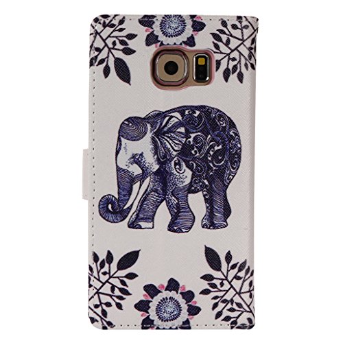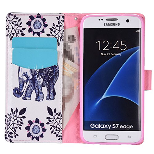 Samsung Galaxy S7 Edge ケース UNEXTATI 高品質 PUレザー 手帳型 ケース 財布型 ウォレット型 衝撃吸収 保護カバー カード収納 ホルダー 横開 スタンド機能 マグネット開閉式 シリコンカバー 液晶保護 落下防止 防塵 高級 合皮レザー Samsung Galaxy S7 Edge 用 Case Cover (P6 象)
