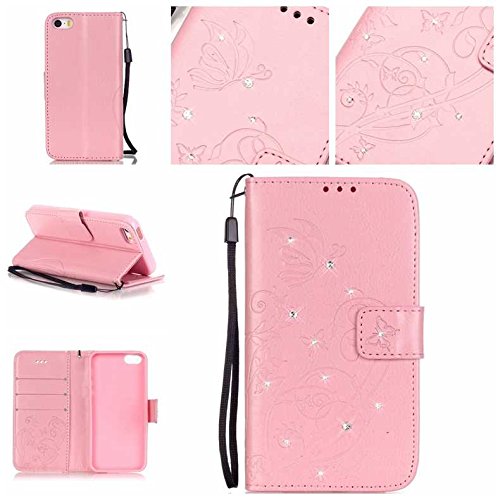 iPhone SE / iPhone 5 / 5s ケース, UNEXTATI 手帳型ケース Apple iPhone SE / iPhone 5 / 5s ケース カバー 高品質 PUレザー 手帳型 ウォレット型 財布型 液晶保護 カード収納 スタンド機能 マグネット式 ダイヤモンド (P4 ピンク)