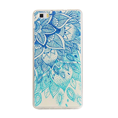Huawei P8 Lite ケース カバー UNEXTATI 高品質 超薄型 高級 TPU 保護カバー 液晶保護 衝撃吸収 全面保護 耐汚れ 柔軟 脱着簡単 落下防止 防塵 耐久 透明 Huawei P8 Lite 用 Case Cover (P5 ブルー)