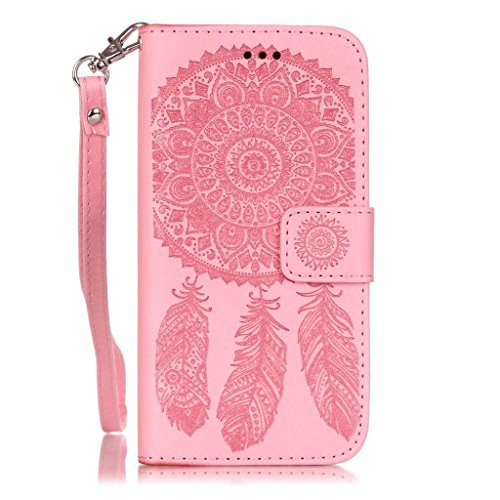 UNEXTATI iPhone 6 Plus / iPhone 6s Plus ケース PUレザー 手帳型ケース カバー カード収納 ストラップ 付き Apple iPhone6 Plus / iPhone6s Plus 用 Case Cover (ピンク)