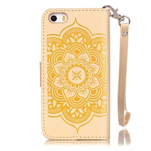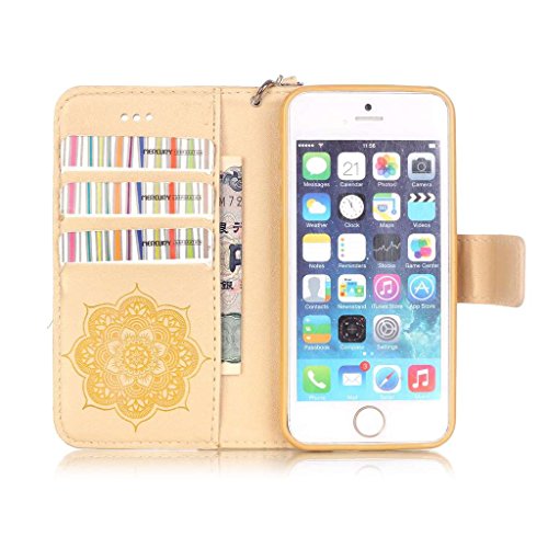 UNEXTATI iPhone 5 / iPhone 5s ケース PUレザー 手帳型ケース カバー カード収納 ストラップ 付き Apple iPhone5 / iPhone5s 用 Case Cover (イエロー)