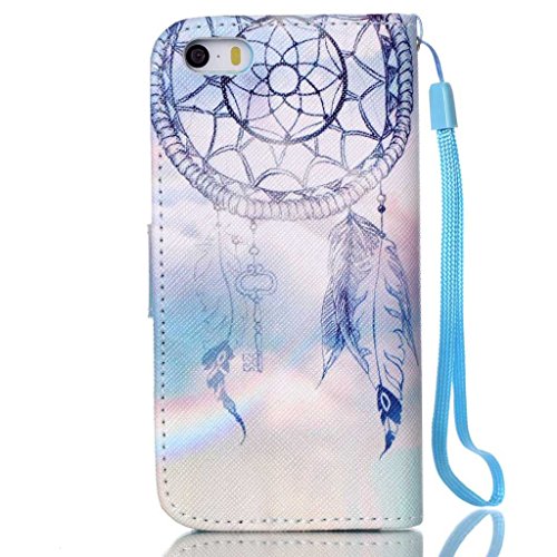 UNEXTATI iPhone 5 / 5s ケース 手帳型ケース カバー ウォレット型ケース 高品質 PUレザー 収納 耐衝撃 全面保護 Apple iPhone5ケース iPhone5s ケース Case (ブルー, P8)