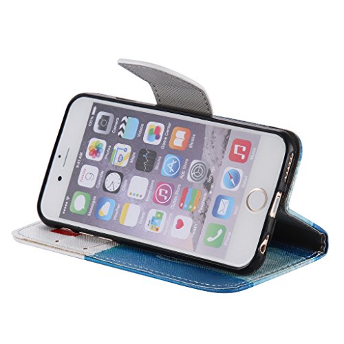 UNEXTATI iPhone 6 Plus / iPhone 6S Plus ケース 高品質 合皮レザーケース マグネット 全面保護 手帳型 ケース カバー カードホルダー 付き スタンド 防塵 防水 Apple iPhone6 Plusケース iPhone6s Plusケース Case (P13 ブルー)