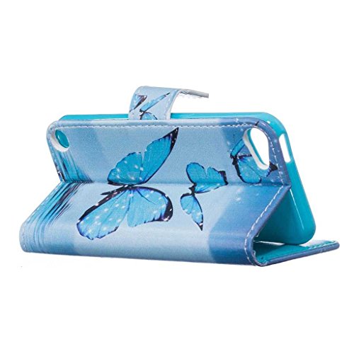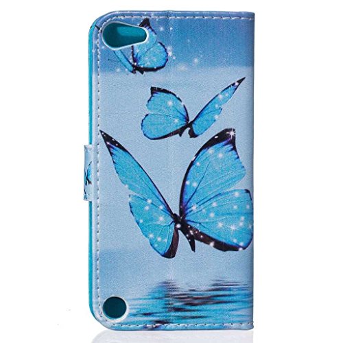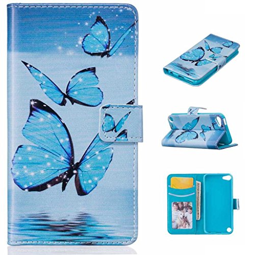 iPod Touch 第5世代 / 第6世代 ケース 手帳型ケース, UNEXTATI 高品質PUレザー 財布型ケース 保護カバー カード収納 スタンド機能 マグネット開閉式 Apple iPod Touch 第5世代 / 第6世代 ケース 防塵 落下防止 保護カバー Case (P4 ブルー)