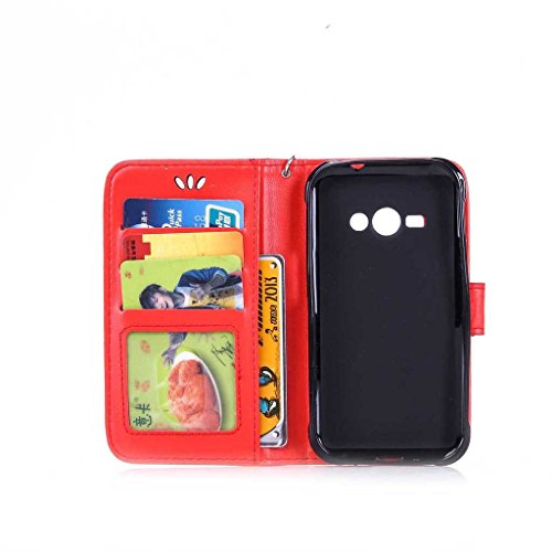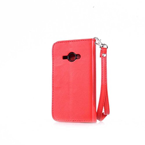 Samsung Galaxy J1 Ace ケース UNEXTATI Samsung Galaxy J1 Ace 手帳型ケース カバー 液晶保護 カード収納 スタンド機能 マグネット開閉式 ストラップ付き (P3 レッド)