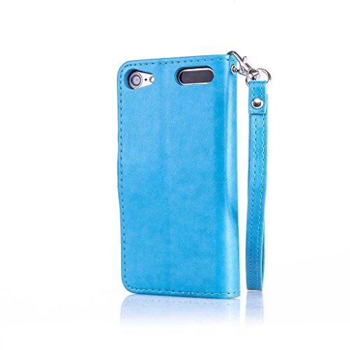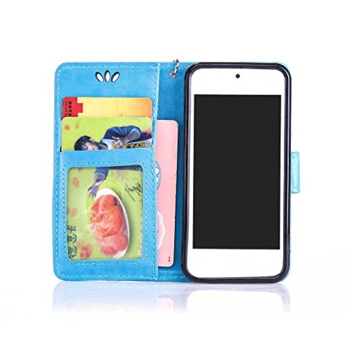 iPod Touch 第5世代 / 第6世代 ケース UNEXTATI Apple iPod Touch 第5世代 / 第6世代 手帳型ケース カバー 液晶保護 カード収納 スタンド機能 マグネット開閉式 ストラップ付き (P7 ブルー)