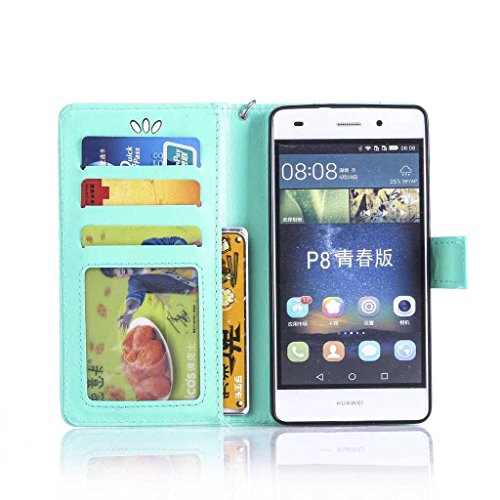 Huawei P8 Lite ケース UNEXTATI Huawei P8 Lite 手帳型ケース カバー 液晶保護 カード収納 スタンド機能 マグネット開閉式 ストラップ付き (P1 蝶)