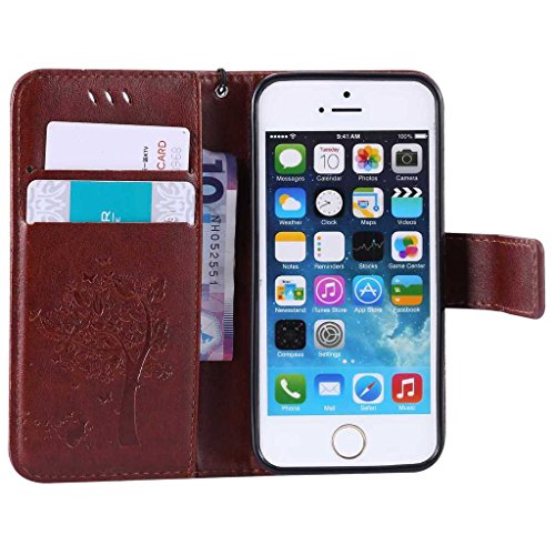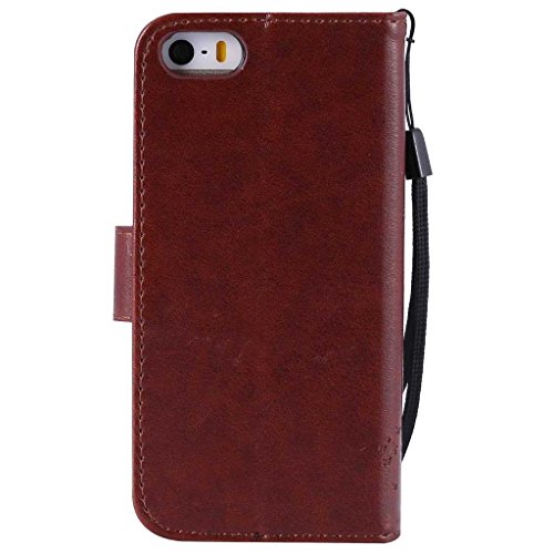 iPhone SE / iPhone 5 / 5s ケース 手帳型ケース, UNEXTATI 高級 PUレザー 保護ケース 財布型 カバー 液晶保護 カード収納 スタンド機能 マグネット開閉式 ストラップ付き Apple iPhone SE / iPhone 5 / 5s ケース 保護カバー (P10 蝶)