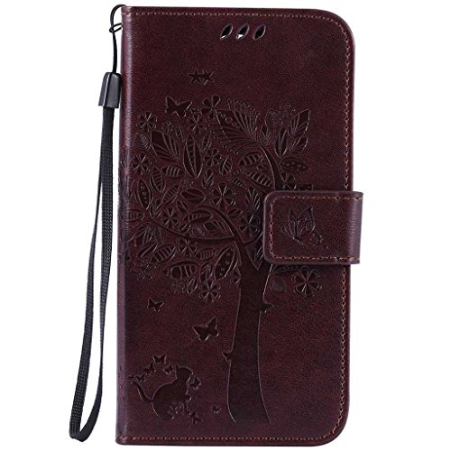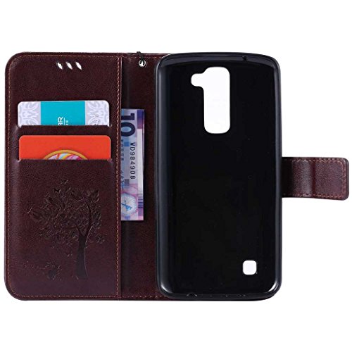 LG K7 / K8 ケース 手帳型ケース, UNEXTATI 高級 PUレザー 保護ケース 財布型 カバー 液晶保護 カード収納 スタンド機能 マグネット開閉式 ストラップ付き LG K7 / K8 ケース 保護カバー (P4 ブラウン)