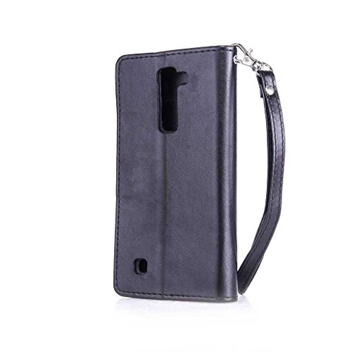 LG K7 / K8 ケース UNEXTATI LG K7 / K8 手帳型ケース カバー 液晶保護 カード収納 スタンド機能 マグネット開閉式 ストラップ付き (P9 ブラック)