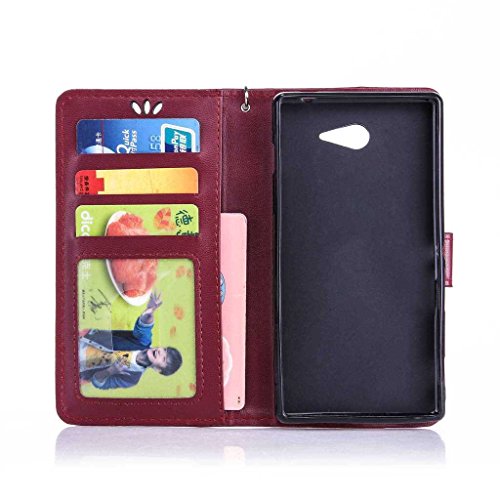 Sony Xperia M2 ケース UNEXTATI Sony Xperia M2 手帳型ケース カバー 液晶保護 カード収納 スタンド機能 マグネット開閉式 ストラップ付き (P5 蝶)