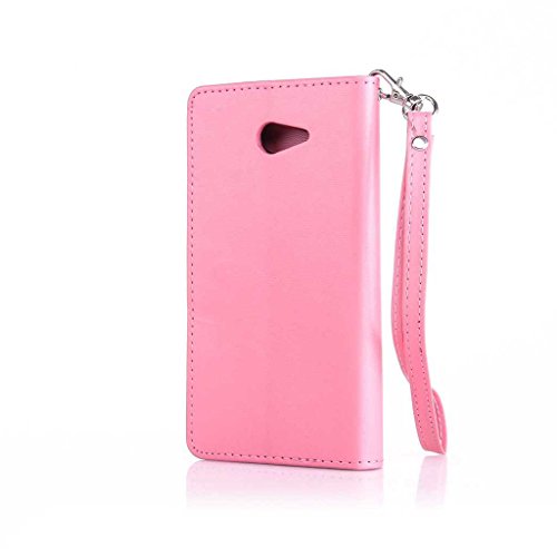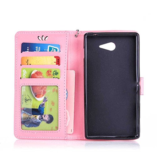 Sony Xperia M2 ケース UNEXTATI Sony Xperia M2 手帳型ケース カバー 液晶保護 カード収納 スタンド機能 マグネット開閉式 ストラップ付き (P8 ピンク)
