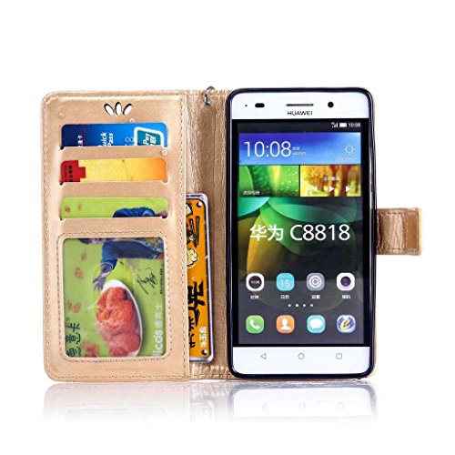 Huawei Honor 4C ケース UNEXTATI Huawei Honor 4C 手帳型ケース カバー 液晶保護 カード収納 スタンド機能 マグネット開閉式 ストラップ付き (P2 蝶)