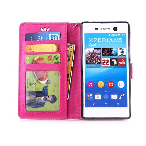 Sony Xperia M5 ケース UNEXTATI Sony Xperia M5 手帳型ケース カバー 液晶保護 カード収納 スタンド機能 マグネット開閉式 ストラップ付き (P4 蝶)