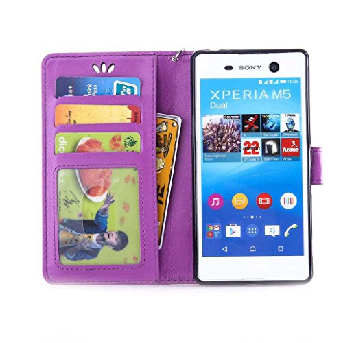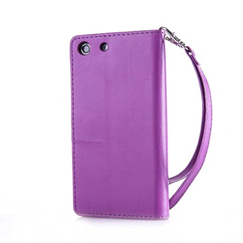 Sony Xperia M5 ケース UNEXTATI Sony Xperia M5 手帳型ケース カバー 液晶保護 カード収納 スタンド機能 マグネット開閉式 ストラップ付き (P10 紫色)