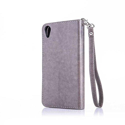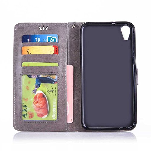 HTC Desire 820 ケース UNEXTATI HTC Desire 820 手帳型ケース カバー 液晶保護 カード収納 スタンド機能 マグネット開閉式 ストラップ付き (P6 グレー)