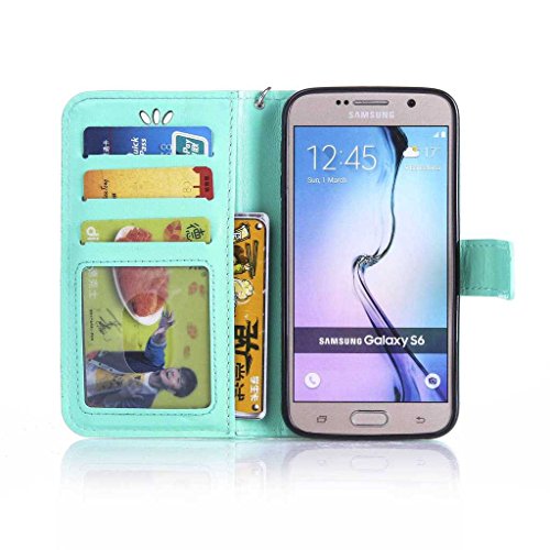 Samsung Galaxy S6 ケース UNEXTATI Samsung Galaxy S6 手帳型ケース カバー 液晶保護 カード収納 スタンド機能 マグネット開閉式 ストラップ付き (P1 蝶)
