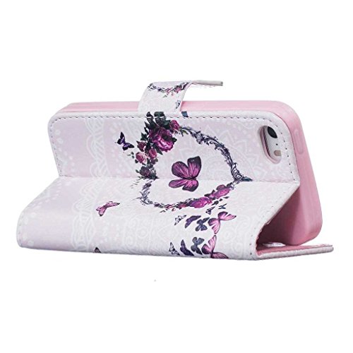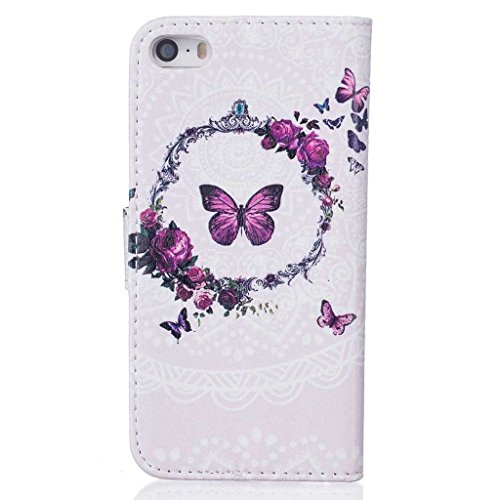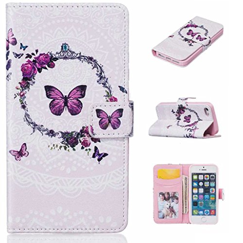 iPhone SE / iPhone 5 / 5s ケース 手帳型ケース, UNEXTATI 高品質PUレザー 財布型ケース 保護カバー カード収納 スタンド機能 マグネット開閉式 Apple iPhone SE / iPhone 5 / 5s ケース 防塵 落下防止 保護カバー Case (P5 蝶)