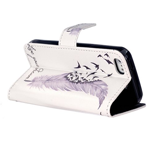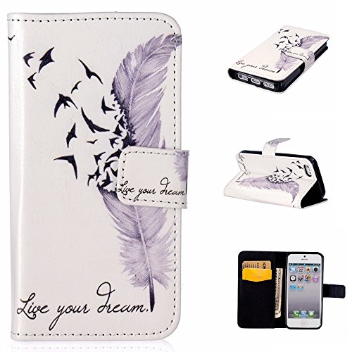 UNEXTATI iPhone SE 5 5s 手帳型 ケース 高級PUレザー カード収納 ホルダー 付き 耐衝撃 全面保護 スタンド機能付き Apple iPhone5ケース iPhone5sケース カバー Case (P4, ホワイト)