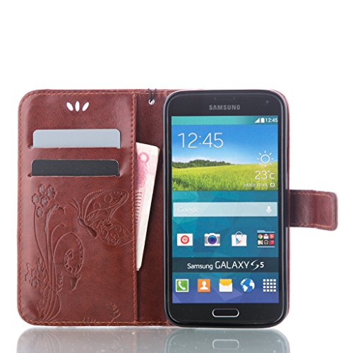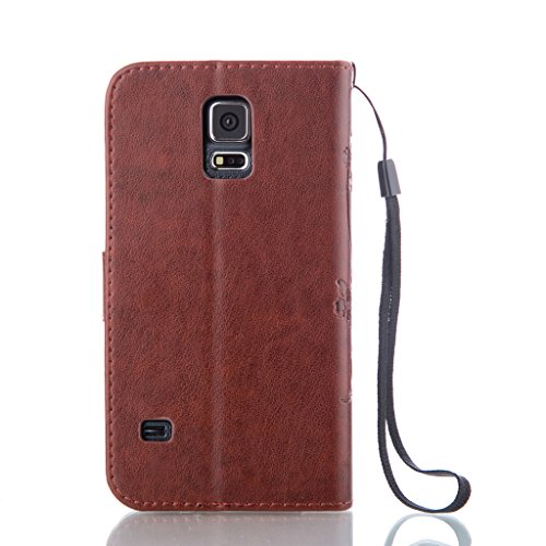 UNEXTATI Galaxy S5 ケース 手帳型 保護 ケース 高品質 PU レザー ストラップ付き カード収納ケース カバー 耐衝撃 スタンド機能 付き Samsung Galaxy S5 ケース Case (P1 ブラウン)