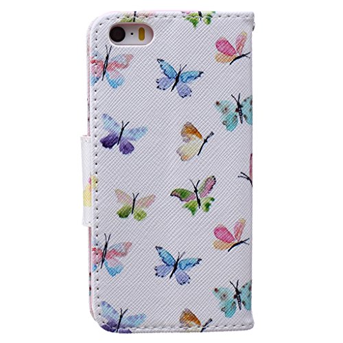 UNEXTATI iPhone 5 / 5s 対応 ケース 全面保護 高品質 レザー 手帳型ケース カバー カード収納 スタンド機能 マグネット開閉式 Apple iPhone5 iPhone5S 用 Case (ホワイト #1)