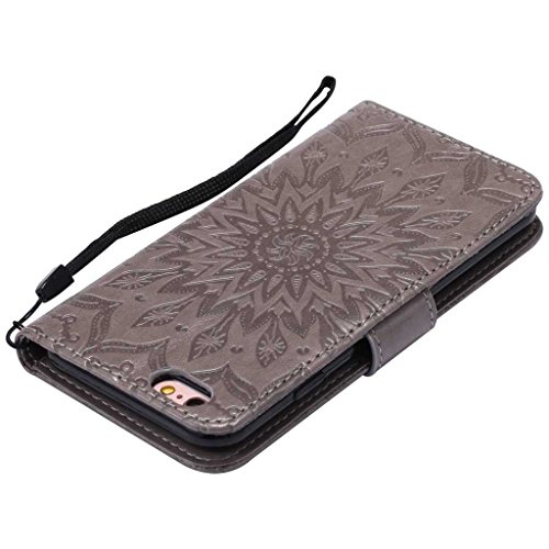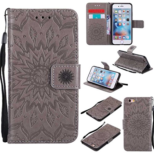 iPhone 6 6s ケース 高品質 PU手帳型 耐摩擦 全面保護ケース カード収納 スタンド機能 財布型 アイフォン 6/6s用 ケース (P2 グレー)
