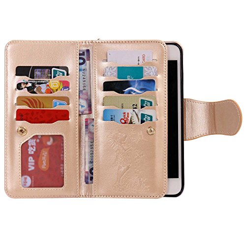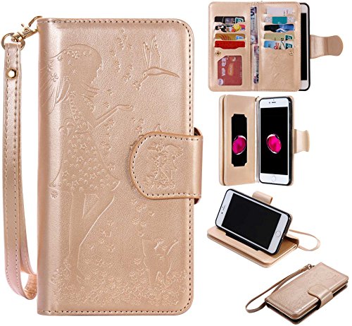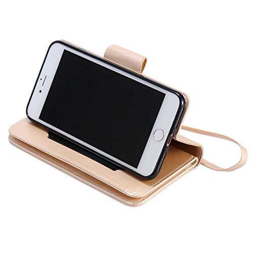 iPhone7 Plus ケース カード収納 手帳型 ウォレット型 スタンド機能 ケース ストラップ付き 落下防止 マグネット開閉式 財布型 カバー iPhone 7 Plus ケース (P7 ゴールド)