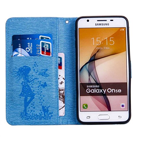 Samsung Galaxy J5 Prime ケース マグネット式 手帳型 耐衝撃 保護ケース スタンド機能付き 防塵 財布型 プロテクター Samsung Galaxy J5 Prime カバー (P2 ブルー)